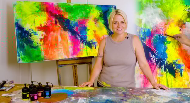 Schritt für Schritt führen dich die Video-Lektionen durch verschiedene Techniken: vom lasierenden Schichten über die Kombination von Linie und Fläche bis hin zur bewussten Farbwahl im Kontrastspiel zwischen Aquarylic Color Neon- und Acrylfarben. Du arbeitest mit freien Kompositionsprinzipien, entwickelst Spannung durch Gegensätze – und schaffst Werke, in denen Bewegung, Tiefe und Licht kraftvoll zusammenspielen.